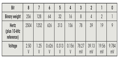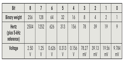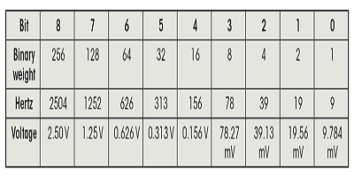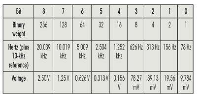 6.該表顯示了刻度4的頻率到電壓的轉換