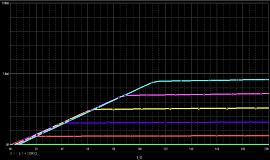 不要簡單地將晶體管放置在電路中而不模擬其負載線。您的系統可能需要在線性或飽和狀態下運行。在開關穩壓器中,需要確保在負載電阻值的所有可能范圍內都在線性范圍內工作。使用參數直流掃描,您可以通過改變負載和基極/柵極電壓輕松地為系統創建負載線。下圖顯示了一組可用來構造載荷線的SPICE傳遞曲線示例。
