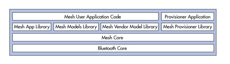 圖3描繪了BLE Mesh節點中的軟件層。請注意,Mesh用戶和Provisioner應用程序如何位于體系結構的頂部,庫和核心功能的上方,以使它們獨立于底層BLE Mesh網絡。還請注意,網格供應商模型庫如何使添加專有功能,同時保持與藍牙標準的兼容性成為可能。