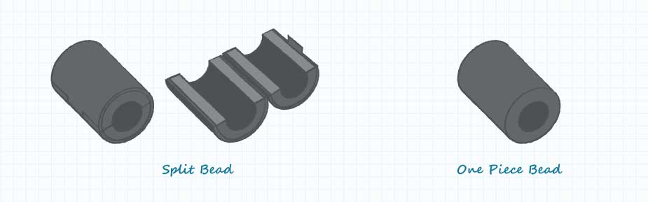 2、選擇一個鐵氧體磁珠,該磁珠應物理地圍繞電纜,并在所關注的頻率下提供高阻抗。一些鐵氧體磁珠公司提供分體式鐵氧體磁珠用于測試和小批量生產。分裂的鐵氧體磁珠允許組裝到電纜上,而無需直流輸出連接器穿過鐵氧體磁珠中的孔。