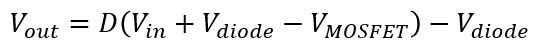 輸出電壓是PWM占空比,二極管正向壓降和MOSFET導通狀態壓降的函數。