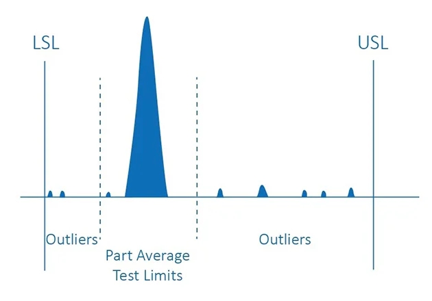 PAT使用統計技術來確定這些測試結果的限制。設置這些測試極限是為了刪除輪廓線(其參數與典型零件在統計上不同的零件),并且對通過良好控制的過程正確加工的零件的成品率影響應最小。