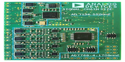 由于顯著減少了設計元素的數量,因此實現精度性能的努力非常少。這樣可以縮短設計時間,縮短客戶產品上市時間,簡化BOM管理并提高可靠性。卸下抗混疊濾波器,驅動器和參考緩沖器將大大減少系統板的面積。儀表放大器可用于直接驅動ADC。例如,對于AD7134,由于它是僅差分輸入的ADC,因此它具有差分儀表放大器,例如LTC6373可以用作驅動程序。圖14中的比較顯示了基于離散時間的信號鏈和基于連續時間的信號鏈的信號鏈。與等效的基于離散時間的信號鏈相比,我們的實驗表明節省了70%的面積,這使其成為高密度多通道應用的絕佳選擇。