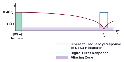 對于連續時間sigma-delta(CTSD)ADC,衰減是固有的,因此我們不需要任何抗混疊濾波器。