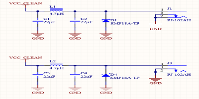 VCC_CLEAN網(wǎng)絡(luò)只是在穩(wěn)壓板上過濾的電池電壓。由于只有監(jiān)視器依靠電池電壓運行,而電池電壓具有自己的內(nèi)部穩(wěn)壓器,因此對大容量電容的需求很小。電池電源的預(yù)期負載非常穩(wěn)定,幾乎沒有瞬變現(xiàn)象。