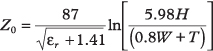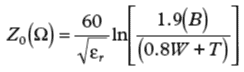 H是從地平面到信號線的距離,W是線寬度,T是線厚度;所有尺寸單位為mils。εr是PCB材料的介電常數(shù)。