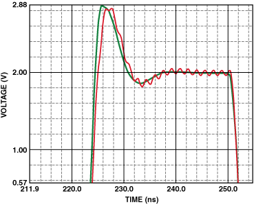 圖7中的振蕩顯示了2.54厘米的線長對高速運放非垂直輸入的影響。等效雜散電感為29nh(納米能源),足以引起持續(xù)的低電平振蕩,并在整個瞬態(tài)響應期間持續(xù)存在。圖中還顯示了如何使用地平面減輕雜散電感的影響。