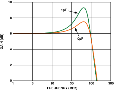 在高速電路中,影響很大,僅僅十分之幾皮卡就足夠了。舉例說明:如果在逆變輸入端只存在1pf的附加雜散寄生電容,則在頻域內(nèi)可能導致幾乎2db的峰值(圖4)。如果存在足夠的電容,它會導致不穩(wěn)定和振蕩。