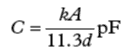 C為電容,A為板面積,單位為平方厘米,k為板材料的相對介電常數(shù),d為板間距離,單位為厘米。