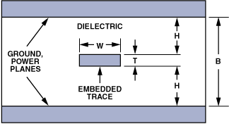 帶狀線控制阻抗線(見圖14)使用兩層地平面,信號線夾在它們之間。這種方法使用更多的通道,需要更多的板層,對介電厚度變化敏感,而且成本更高,因此通常只在要求苛刻的應用中使用。