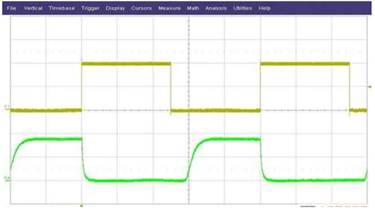通過軟啟動電容器C5的短路來快速打開/關閉轉換器是調節LED亮度的簡便方法。圖2顯示了PWM輸入信號和實際LED電流。這種PWM調光方法效率更高,因為當SS引腳短路時,轉換器將關閉并且消耗很少的功率。但是,該方法也相對較慢,因為轉換器每次接通時必須以受控方式逐漸增加輸出電流,從而在輸出電流上升之前產生非線性的有限死區時間。。同時,這也將接通時間的最小負載周期降低到10%-20%。在不需要高速和100%PWM調節的某些LED應用中,這種方法可能就足夠了。