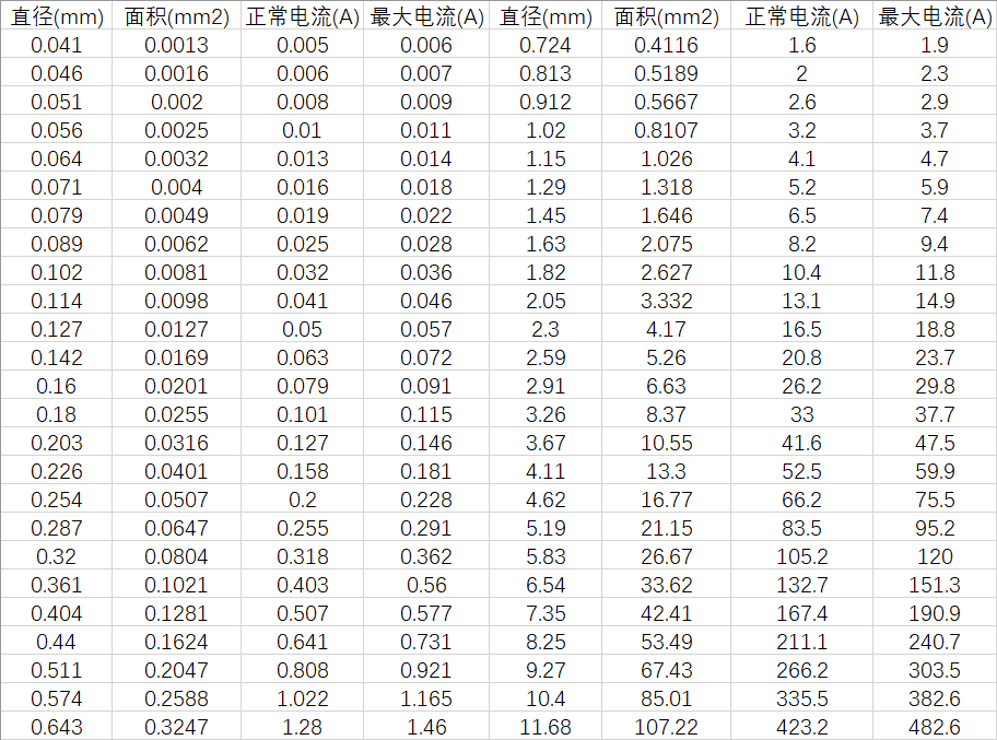 在電路設計的過程中,我們需要用到排線、轉接線等等;實際設計過程中,導線的線徑不可能無限制的大,因電路設計排線、穿線受到結構的限制,且為了節(jié)省成本考慮,電路設計中的導線盡可能的細,下面就給出常溫(25℃)下線徑(銅線)與電流的關系,直接上干貨