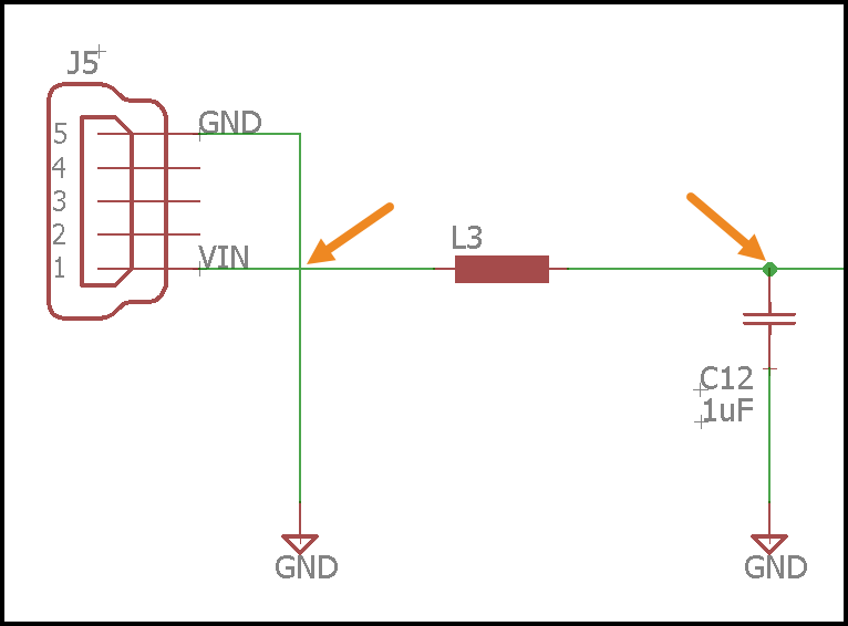每當有兩條線形成一個結并共享一個電氣連接時,該交叉點就需要一個結點。這是每個原理圖設計中的標準做法。