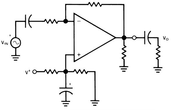 這是使用運(yùn)算放大器,電阻器和電容器實(shí)現(xiàn)的簡單放大器電路。通過為電阻器和電容器選擇合適的值,可以在輸出端獲得顯著的增益。